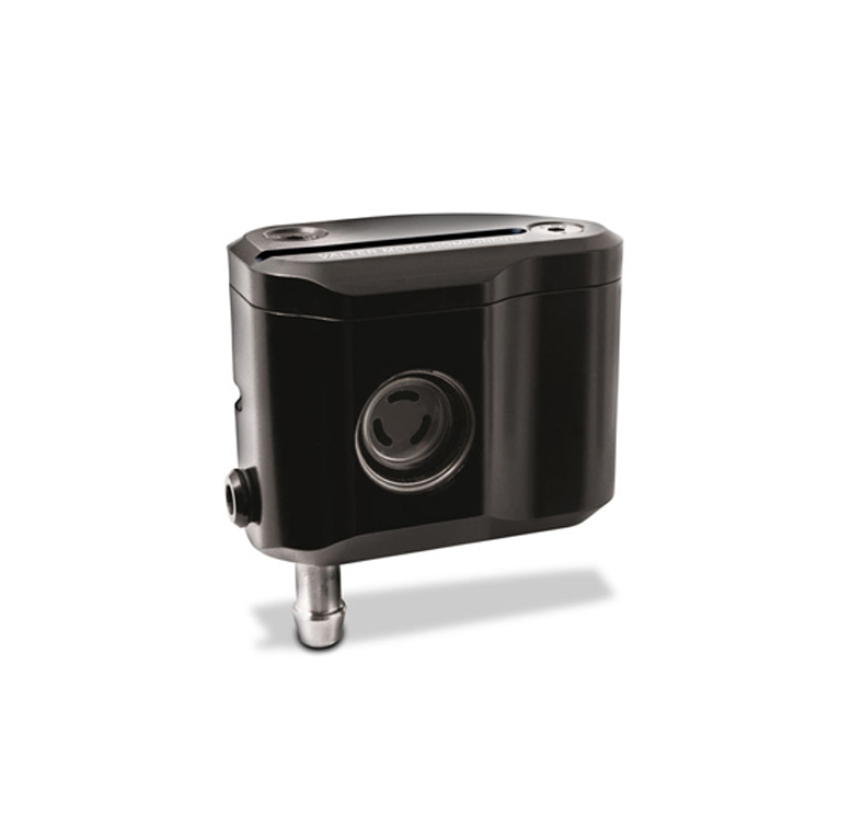 Αυτό το μπροστινό δοχείο λαδιού έχει απο τη μία πλευρά παράθυρο ελέγχου στάθμης λαδιού. Δύο διαφορετικές συνδέσεις σωλήνων εξόδου, μία πλευρική και μία στο κάτω μέρος. Το προιόν οπως και το καπάκι αλουμινίου είναι μαύρο με χρωματιστά ένθετα. Διατίθεται σε Χρυσό και Κόκκινο.